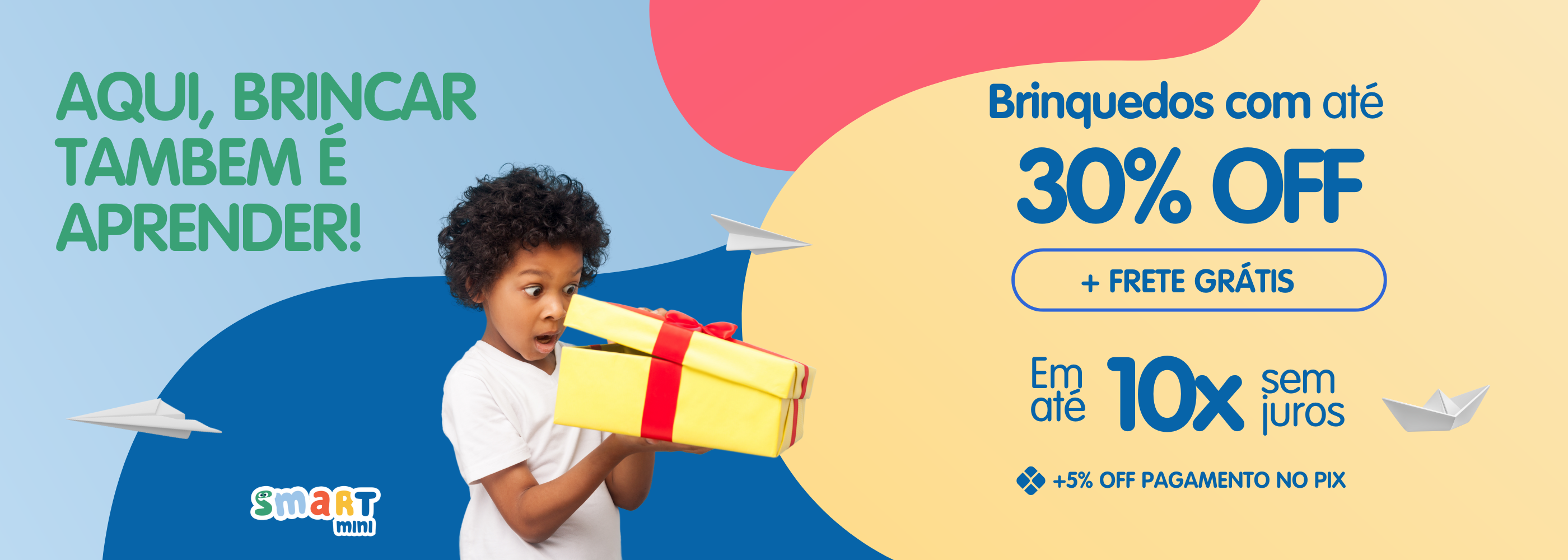 Na SmartMini, cada brinquedo é um convite para sonhar, explorar e aprender. Nossos produtos combinam qualidade, segurança e um toque de magia para transformar o dia a dia em uma jornada de descobertas e desenvolvimento. Seja através de um brinquedo que estimula a criatividade ou de roupas que trazem conforto e liberdade, oferecemos uma coleção diversificada que acompanha o ritmo alegre e espontâneo da infância, permitindo que cada criança brinque, se desenvolva e cresça sem limites!